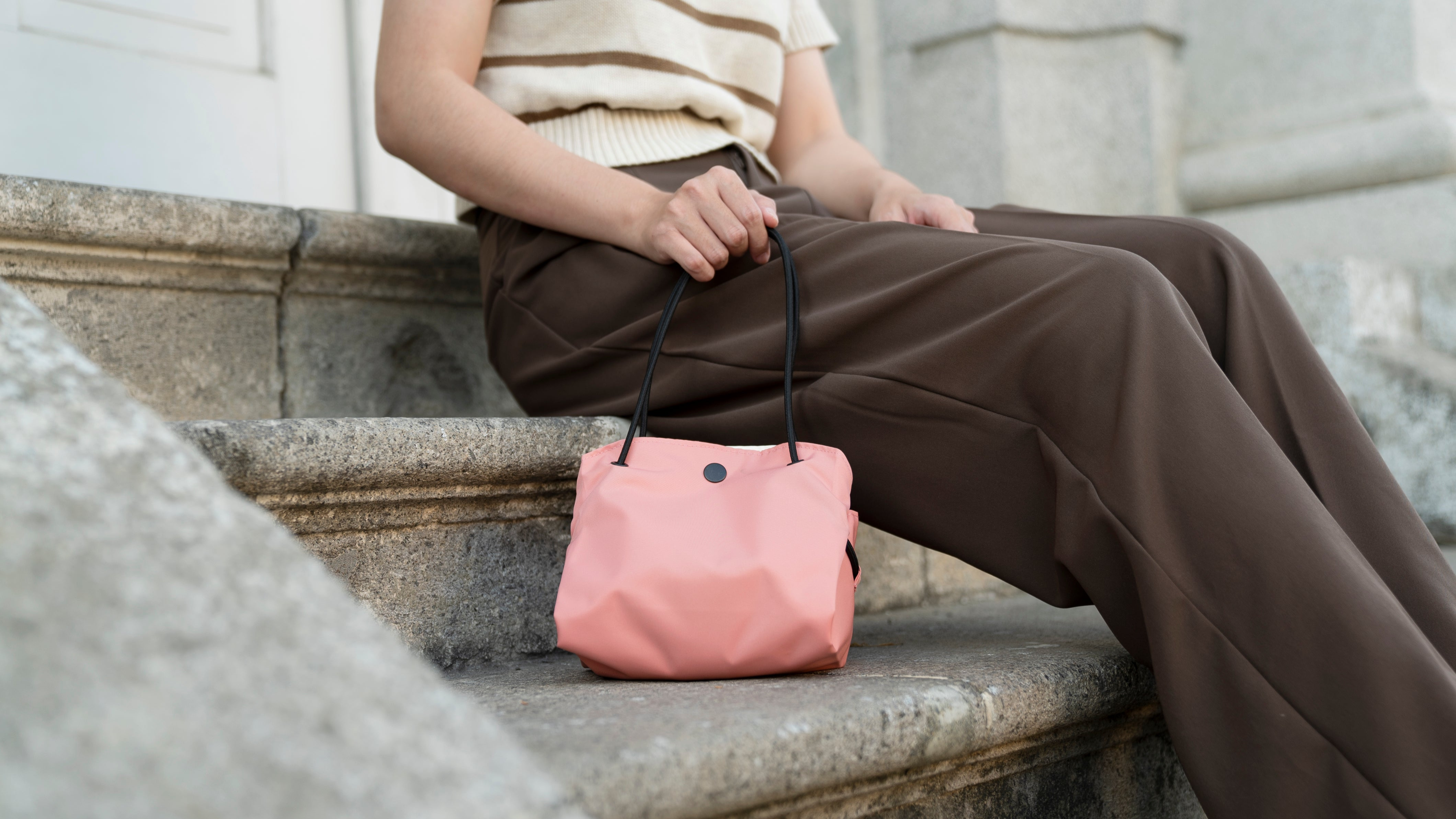 時尚潮包變餐墊!承食包透過獨特剪裁化身時尚潮包,攤平直接變餐墊,滴到菜汁馬上一擦,舒適飲食很簡單。