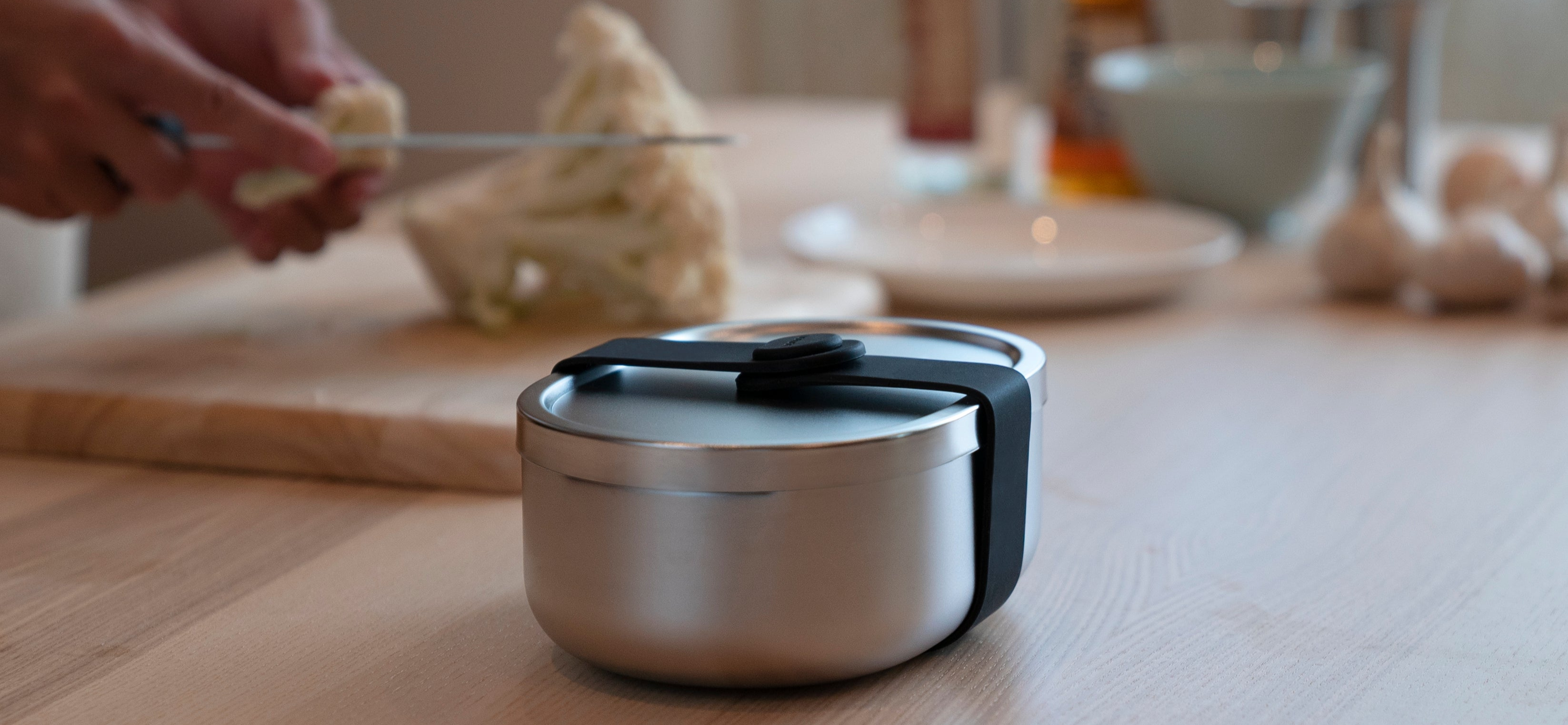 束帶不用拆哦!束帶採用食品級矽膠,耐溫超過 200°C。但放入電鍋時務必要加上蒸架,防止直接接觸到過熱的金屬表面,更能延長矽膠配件的使用壽命。