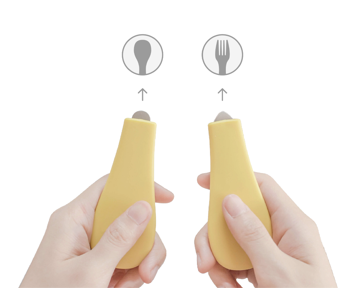 Clicking 口卡餐具獨特的專利設計、握把就是收納盒,與叉子湯匙完美貼合,空間利用最大化。