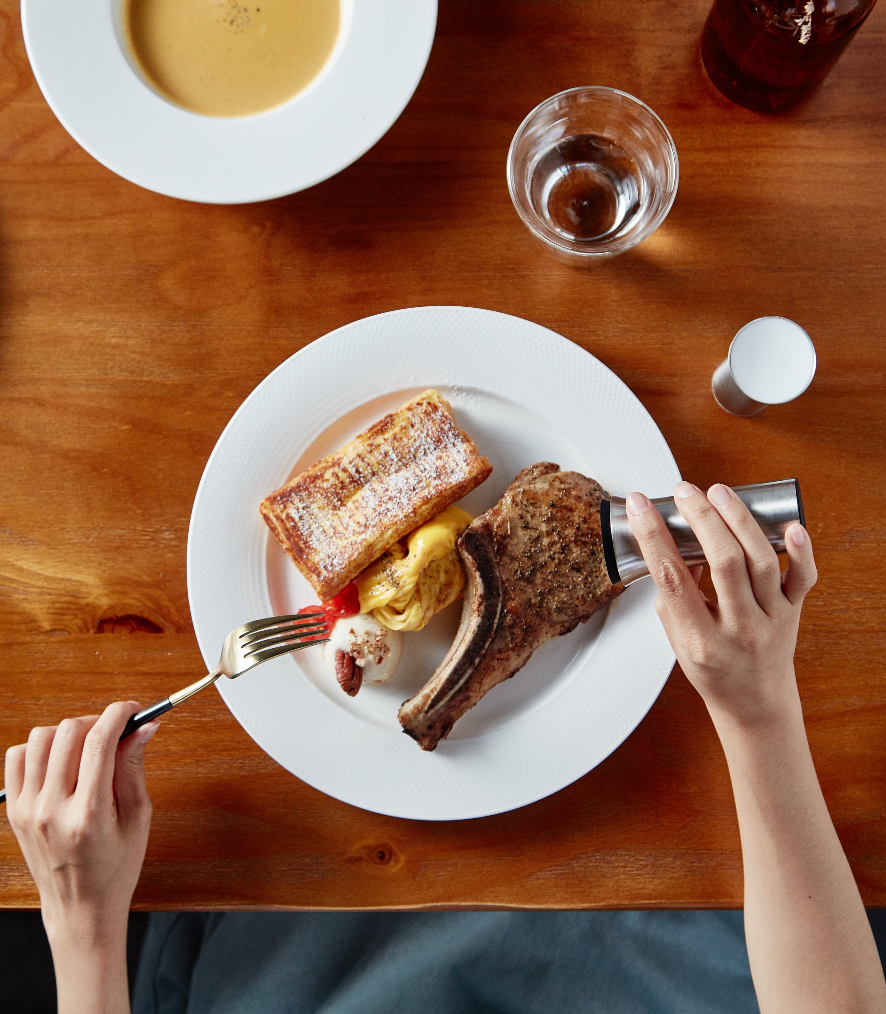 各種餐點都來調味,倒灑出來與重力、手勁間的拿捏,是專屬於你和 One Shake 椒鹽罐之間的伴奏