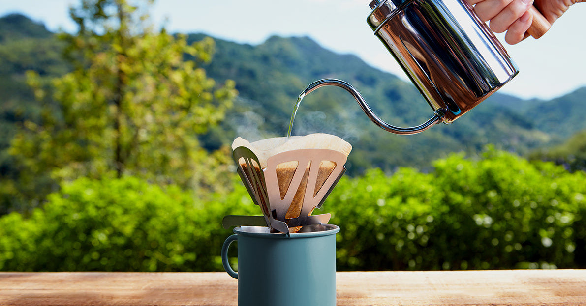 可摺疊收納的三角咖啡濾杯,由轉軸相連的專利設計,使用時只需展開後輕鬆扣上,與濾紙完美的契合,隨處都有咖啡香!